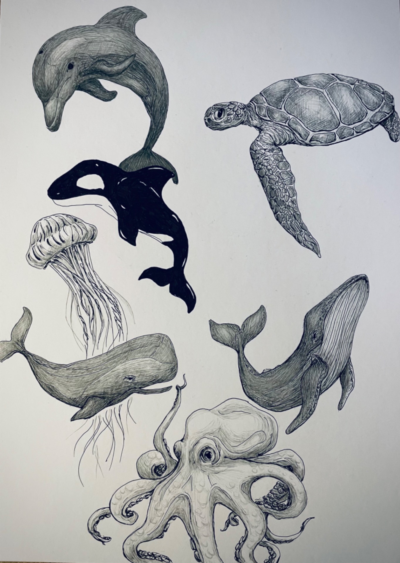 Tussipiirrokset ovat toteutettu Sakuran Pigma micron -kuitukärkikynillä. Jälki on valonkestävää ja arkistointikelpoista.